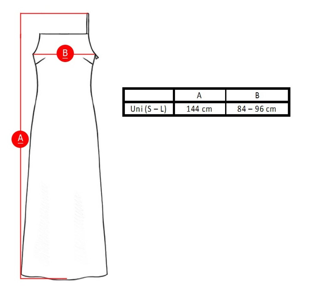 Modelka má na sobě velikost Uni (S-L) a její míry jsou: 85-60-90 při výšce 171cm.