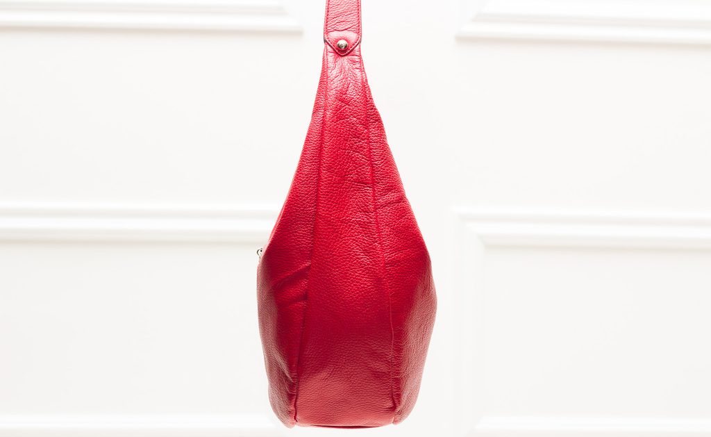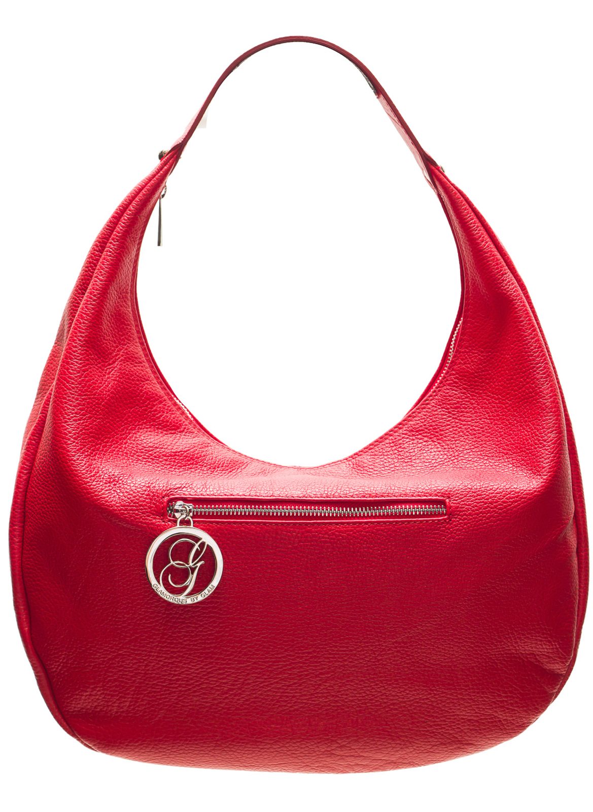 Dámská elegantní kabelka v červené barvě. Kabelka je z pevné pravé kůže a drží tvar. Kabelka má pevné ucho pro nošení na rameni. Zapínání je řešeno na zip. Na přední straně má kabelka malou kapsičku na zip se stříbrným logem Glamorous by Glam. Kabelka je velmi praktická a lze jí kombinovat k barevným outfitům do práce, do města i pro volné chvíle.