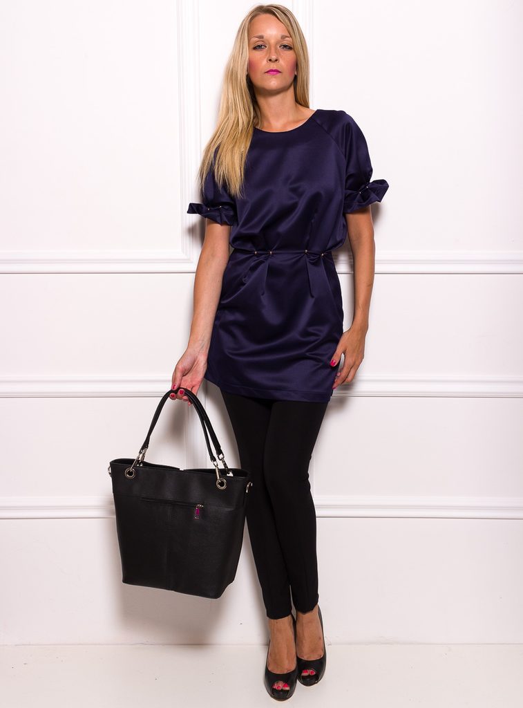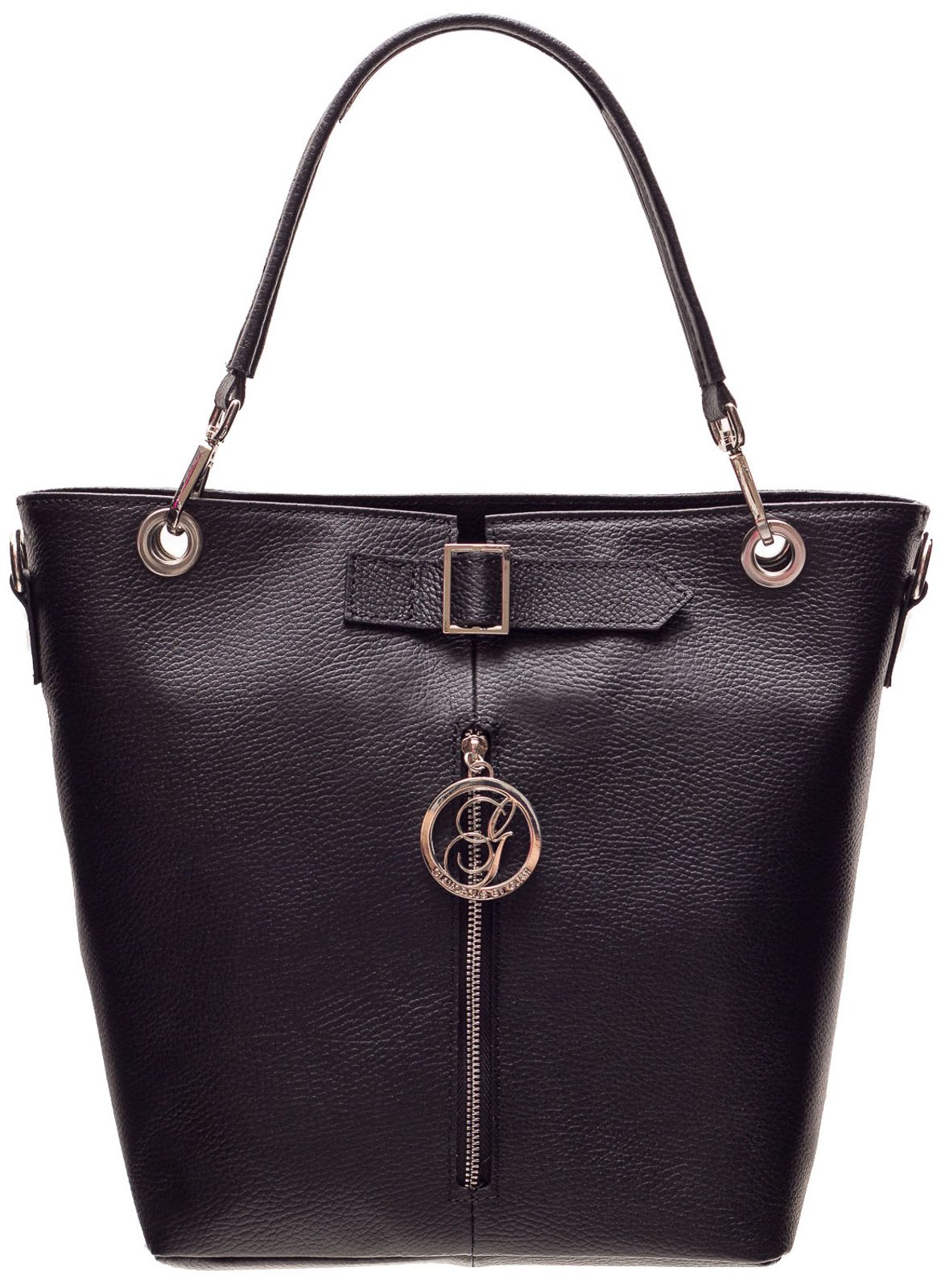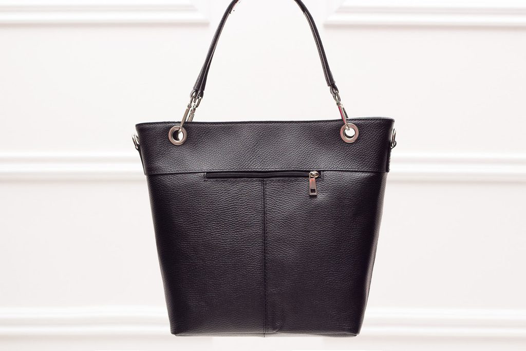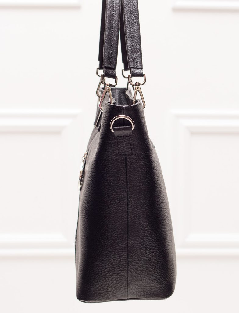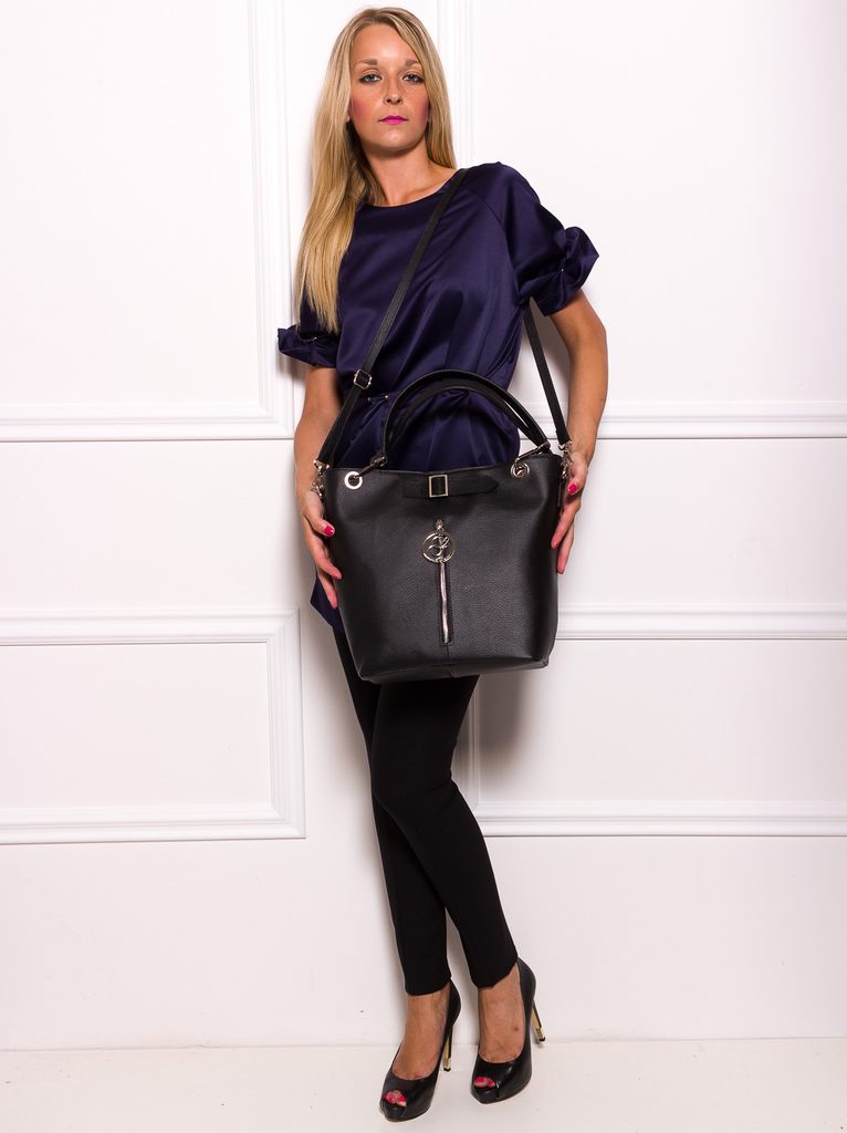 Dámská elegantní kabelka v černé barvě. Celá kožená, krátká poutka do ruky i přes rameno. Na přední straně stříbrná spona a pod ní stříbrný zip s logem Glamorous by Glam. Kabelka má na zadní straně kapsičku na zip. Vhodná k nošení v ruce i přes rameno hodí se do města tak i do práce. Součástí kabelky je i přídavný track.