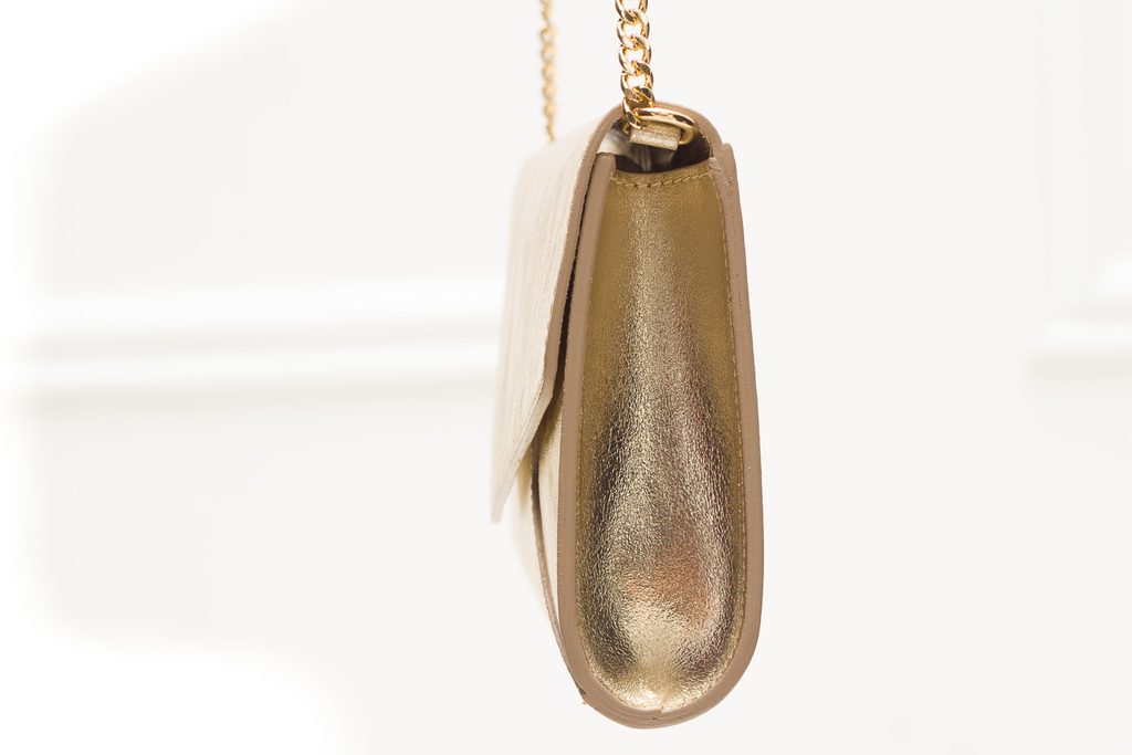 Dámské luxusní psaníčko ve zlaté barvě. Psaníčko má zapínání na magnet a je z pravé kůže. Velice jednoduché a elegantní psaníčko, které se hodí k mnoha outfitům. Psaníčko má zlatý řetízek, tím ho můžete nosit i přes rameno. Pokud řetízek dáte dovnitř máte psaníčko do ruky. Psaníčko je vhodné na společenské události jako jsou plesy, svatby a jiné významné události.