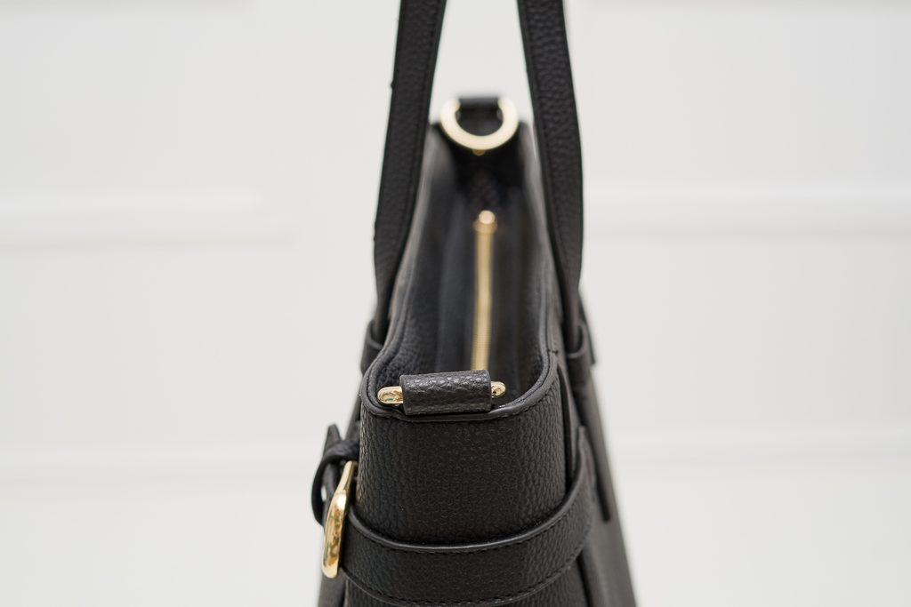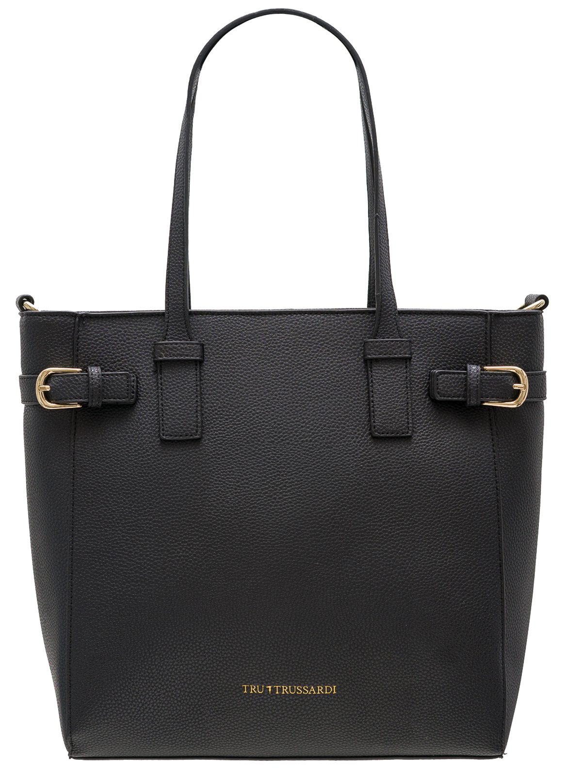 Dámská jednoduchá kabelka přes rameno v černé barvě. Kabelka je značky TRU TRUSSARDI. Kabelka je celá z pravé kůže a drží tvar. Vhodná k nošení přes rameno. Do kabelky se vejde i formát A4. Strany kabelky jsou doplněny přezkami. Zapínání je u kabelky řešeno na zip. Kabelka se hodí ke všednímu nošení do práce i do města. Součástí kabelky je i přídavný track.