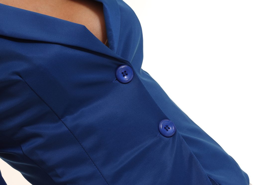 Dámské letní sáčko v modré barvě. Sáčko je jednoduché, na ramenou jsou vycpávky. Zapínání na dva knoflíky. Vhodné ke kalhotám či jeanám, do práce i na společenské události.