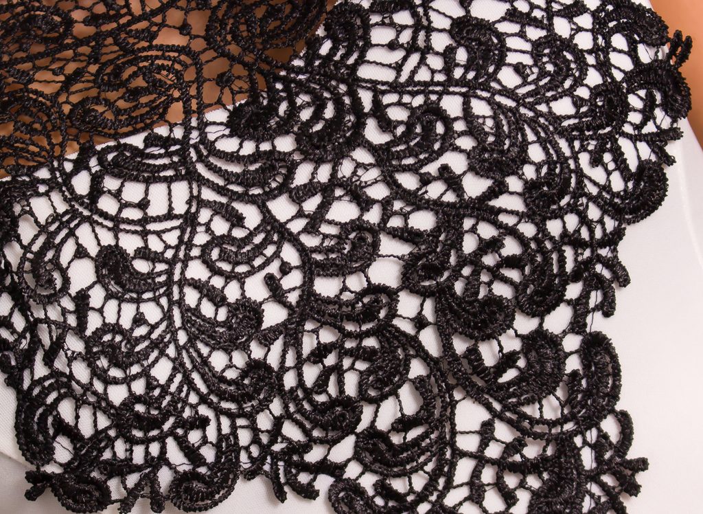 Dámské elegantní bílé šaty s černou krajkou. Šaty jsou na široká krajková ramínka, ,,A" střih. Krajka je ušita i přes prsa až k pasu. Na zádech mají šaty hluboký výkroj. Zapínání je řešeno na zip, který je na boku. Šaty skvěle sedí na těle, příjemný materiál. Vhodné do práce i na společenskou událost.