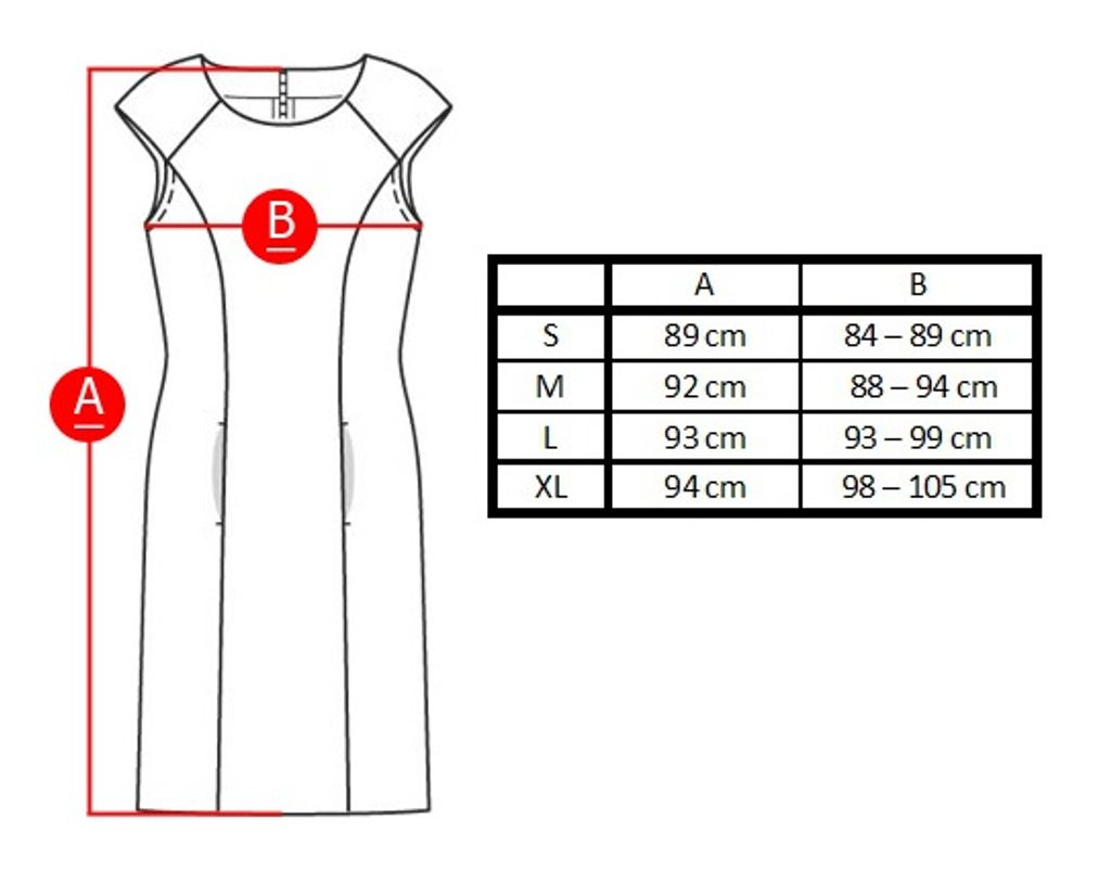 Modelka má na sobě velikost S a její míry jsou: 85-60-90 při výšce 171cm.