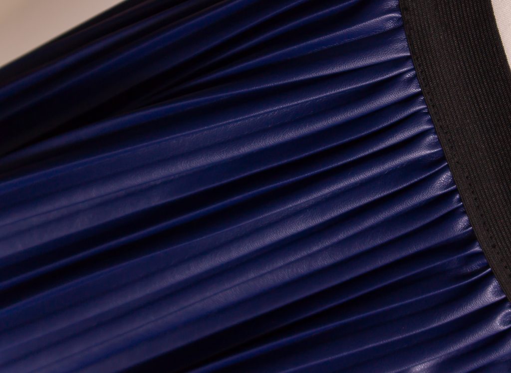 Dámská elegantní plizovaná sukně celá z koženky v modré barvě. Sukně je v pase na černou gumu. Vhodná k jednoduchému tričku či košili, jak do města tak i pro volný čas.