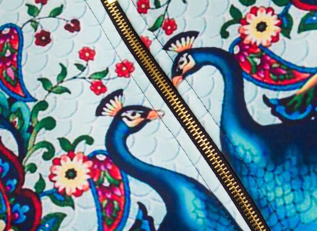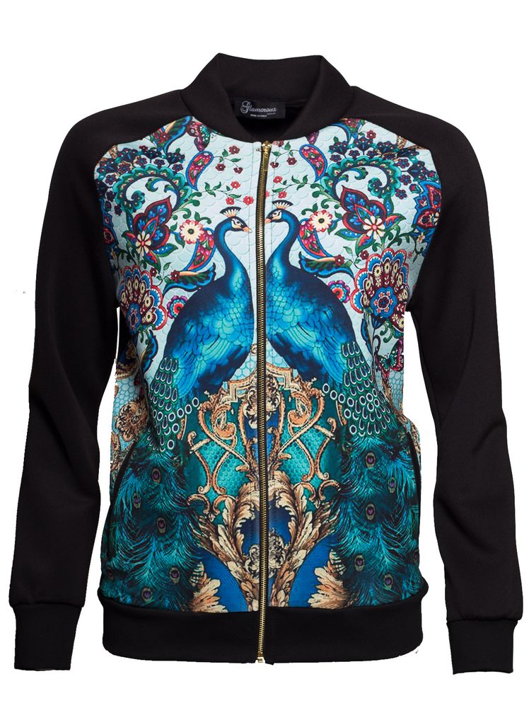 Dámská bundička/mikina s motivem. Bundička je z příjemného materiálu, falečné kapsy, zapínání na zlatý zip. Motivem bundičky je páv. Vhodné k legínám či jeanám, do města i pro volný čas.