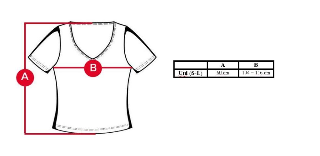 Modelka má na sobě velikost Uni (S-L) a její míry jsou: 85-60-90 při výšce 171cm.