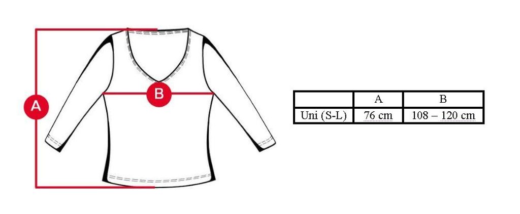Modelka má na sobě velikost Uni (S-L) a její míry jsou: 85-60-90 při výšce 171cm.