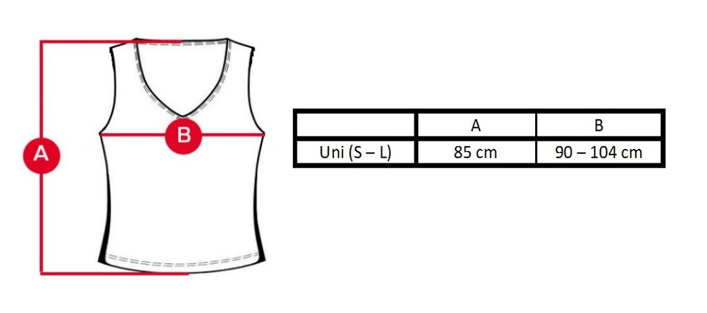 Modelka má na sobě velikost Uni (S-L) a její míry jsou: 85-63-89 při výšce 171cm.