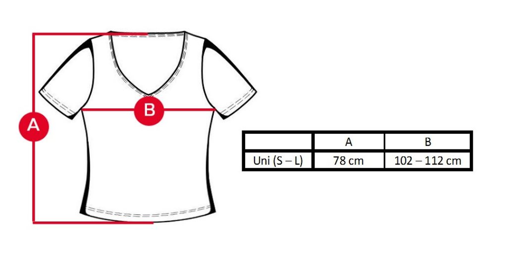 Modelka má na sobě velikost Uni (S-L) a její míry jsou: 85-63-89 při výšce 171cm.