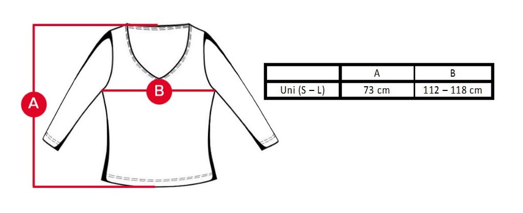 Modelka má na sobě velikost Uni (S-L) a její míry jsou: 85-63-89 při výšce 171cm.