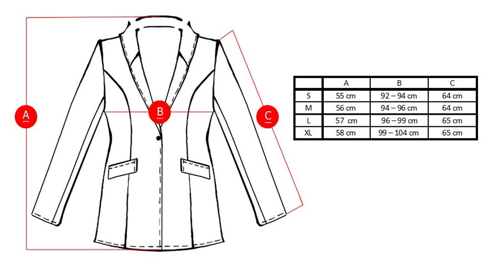 Modelka má na sobě velikost S a její míry jsou: 85-63-89 při výšce 171cm.